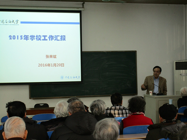 1月20日上午,校長張來斌代表學校黨委及行政到石油大院向離退休教職工通報了2015年學校工作,40余名離退休教職工參加了通報會。通報會由副校長陳大恩主持。
