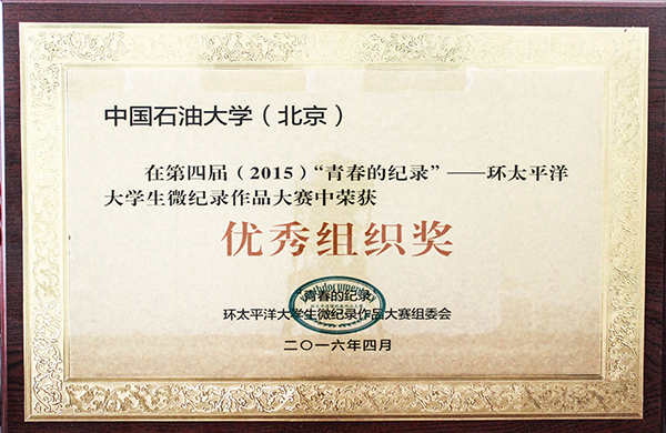 近日,第四屆“青春的紀錄——環太平洋大學生微紀錄作品大賽”頒獎典禮在北京電視臺舉行,中國石油大學獲“優秀組織獎”。