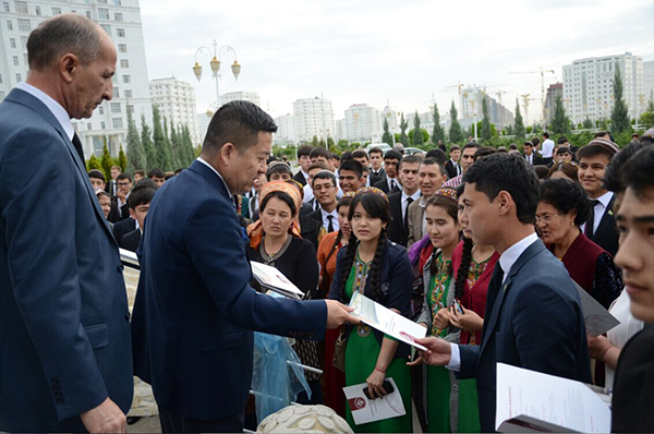 此次招錄工作在土庫曼斯坦油氣署、教育部等部門的監督協助下進行。阿姆河天然氣公司總經理、黨委書記鄧民敏,總經辦兼外聯部經理高彬來到考場看望了考生,并協助學校向當地學生宣傳和介紹了中國石油大學和中國石油大學克拉瑪依校區的基本情況、留學事項以及獎學金政策等信息。