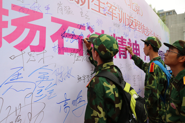 9月18日,石大學生工作部(處)、人民武裝部開展2016級新生軍訓返程徒步長走活動。128名新生代表從平北軍訓基地出發,途徑小浮坨村、十三陵水庫等,最終到達學校北校區南廣場,全程約27公里。