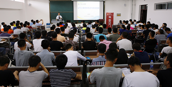 講座中,高德利講述了石油天然氣工程學科的基本特點,從客觀與主觀兩個方面歸納了石油天然氣工程學科涵蓋的科學問題;在分析國際油氣資源勘探開發焦點問題的基礎上,闡明了老油田挖潛、深層資源勘探、非常規油氣開發、海洋與極地資源勘探開發的戰略意義及其面對的挑戰。他還進一步闡述了復雜結構油氣井對于解決相關工程難題的重要性,總結了復雜油氣井的特征,闡明了定向鉆井理論與技術在復雜油氣井鉆井中的作用,并簡要介紹了定向鉆井的前沿理論與技術。最后,高德利院士強調了科技創新和人才培養對于石油天然氣學科發展的重要性,并對新生提出了殷切希望。講座使新生對石油工程專業有了初步的認識,激發了他們學習石油工程專業的熱情,博得了全體與會師生的陣陣掌聲。