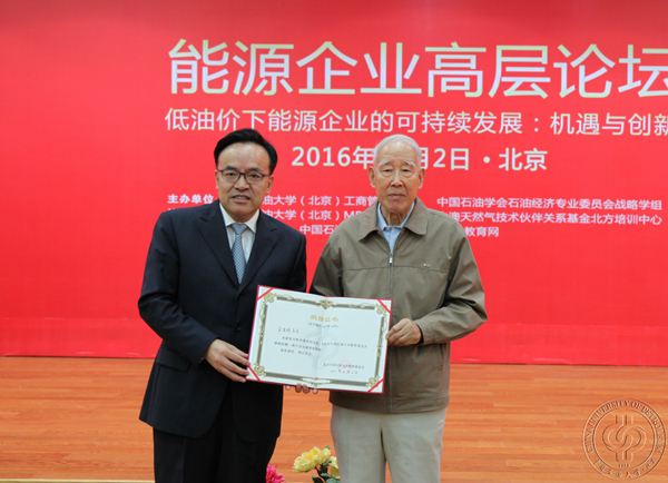 在能源企業高層論壇上,全國政協常務委員、中國石油化工集團原董事長傅成玉,國務院發展研究中心資源與環境政策研究所副所長李佐軍,中國石油集團公司政策研究室副主任,中國石油學會經專委副主任、戰略學組組長王震,分別作了題為“挑戰與機遇——低油價環境下的思考”“供給側結構性改革與中國能源企業的發展”“能源轉型與天然氣市場發展”的主題演講。演講中,傅成玉分析了低油價環境下石油企業發展面臨的挑戰和機遇,指出低油價為提高企業資產效率提供機遇,為加快和深化企業體制機制改革提供機會與動力,為企業技術創新、管理創新和經營模式創新創造機遇;希望中國石油大學工商管理學院能夠結合“互聯網+”的企業經營模式和管理模式,為石油企業應對挑戰和機遇提供支持。李佐軍分析了我國經濟發展新常態的特征,闡釋了供給側結構性改革的概念和內涵,為能源企業適應和把握新常態提供了建議。王震介紹了全球新一輪產業革命和能源轉型的發展趨勢,對能源發展的清潔化、低碳化方向作了深入分析,分享了對能源行業發展與改革的思考。