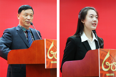 學院教師代表張寶生、在校學生代表丁丹分別發言,表達了對在學院60年發展歷程中做出貢獻的建設者們的感謝和祝福,表示在今后的工作和學習中要繼承和發揚學院精神,為學院取得新的發展成就貢獻力量。