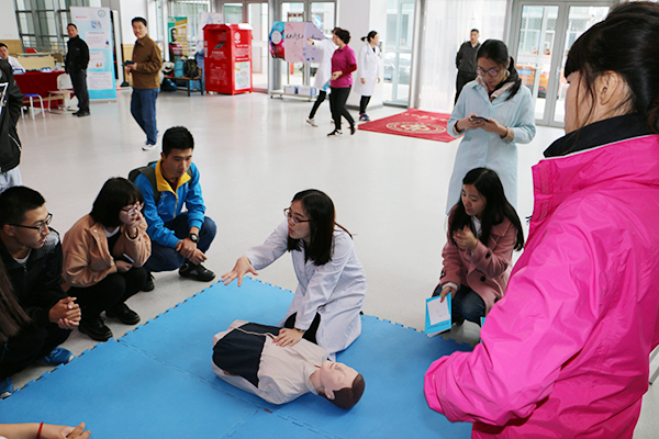 來自北京大學(xué)第三醫(yī)院心血管內(nèi)科的7名主任醫(yī)師及6名主治醫(yī)師為200多名師生進(jìn)行了義診,為師生免費(fèi)測量血壓,答疑解惑,還詳細(xì)講解了關(guān)于心肺復(fù)蘇的相關(guān)理論知識,并現(xiàn)場演示操作要點(diǎn),提高了師生對心肺復(fù)蘇技能的認(rèn)識與掌握,傳達(dá)了“時(shí)間就是生命”的急救理念,解決了師生對冠心病等慢性病的疑難問題。此外,活動中還為前來咨詢就診的師生發(fā)放了防治高血壓宣傳手冊、血壓測量記錄手冊,并通過展板、橫幅積極宣傳健康血壓標(biāo)準(zhǔn)、高血壓的防治辦法以及運(yùn)動降壓的重要性。