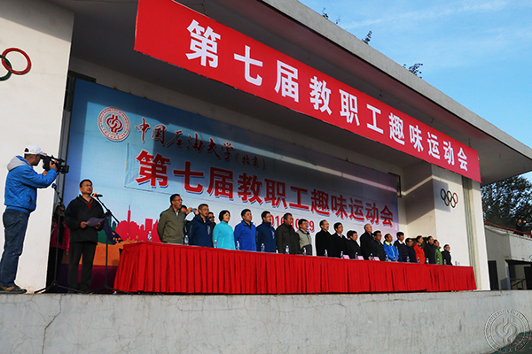 10月29日,中國石油大學第七屆教職工趣味運動會在紅旗操場舉行。黨委副書記、工會主席剛文哲致開幕詞,副校長龐雄奇、副校級干部鮑志東以及相關單位負責人出席了開幕式,來自17支代表隊的近900名教職工參加了運動會。