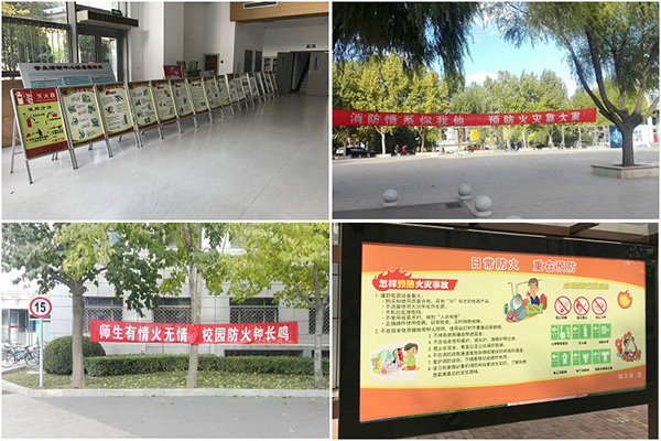 此外,保衛(wèi)處、后勤管理處還通過在校園及學(xué)生公寓懸掛消防宣傳橫幅、展出消防知識展板、張貼櫥窗宣傳海報、微信圖文推送消防安全知識等方式,營造校園消防安全氛圍。
