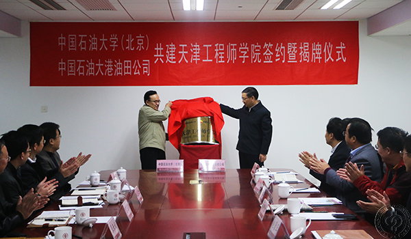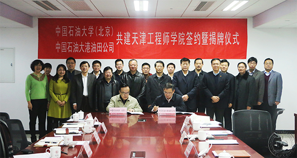 11月25日,中國石油大學(北京)與中國石油大港油田公司共建中國石油大學(北京)天津工程師學院協議簽約暨揭牌儀式在學校主樓A1218會議室舉行。