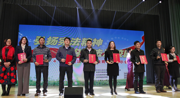 “國家憲法日”來臨之際,11月30日,中共北京市委教育工委、北京市教委、北京教育音像報刊總社共同舉辦了“弘揚憲法精神 構建法治校園”國家憲法日主題教育現場展示會。全市各高校和區縣教委法治教育工作部門負責人及學生代表近600人參加了活動。教育部法制辦、北京市委教育工委、市教委、市司法局等單位領導出席會議。會上對在第四屆北京高校普法微視頻征集展映活動中獲獎的單位和作品進行了表彰,石大共有22件作品獲獎,其中二等獎1件、三等獎5件、入圍獎16件,學校獲得優秀組織獎。