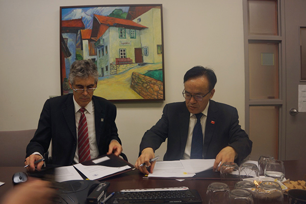 在渥太華大學(xué)訪問期間,張來斌一行與該校教育副校長兼教務(wù)長Michel Laurier、雙語教育中心負責(zé)人Evan Lavoie、工學(xué)院院長Loan Nistor、國際辦負責(zé)人Regine Legault-Bouchard等分別進行了會談。雙方同意在現(xiàn)有本科生聯(lián)合培養(yǎng)的基礎(chǔ)上,繼續(xù)擴大合作領(lǐng)域和內(nèi)容,開展語言教育、教師培訓(xùn)領(lǐng)域的合作,開展本科生訪學(xué)項目,開展博士生來華教學(xué)實習(xí)項目,推薦博士生到渥太華大學(xué)留學(xué)等。會后,雙方續(xù)簽了兩校《合作備忘錄》,并簽署了本科生訪學(xué)項目協(xié)議。