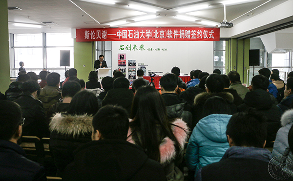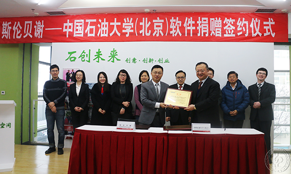 12月15日下午,斯倫貝謝公司Ocean創新開發平臺捐贈暨簽約儀式在石大學生活動中心“石創空間”舉行。斯倫貝謝公司軟件事業部北亞區總經理張西坡代表斯倫貝謝向石大贈送了價值500萬美元的Ocean創新開發平臺及相關許可,并與石大黨委副書記雷玉江分別代表企校雙方簽署共建合作協議書,互贈紀念牌。