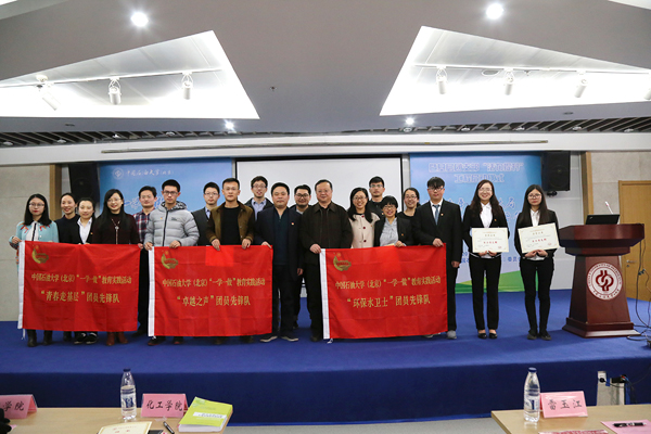 團(tuán)委書記周玉成為2016年團(tuán)中央“活力團(tuán)支部”獲獎支部頒發(fā)證書。雷玉江為2017年“活力提升”工程輔導(dǎo)員頒發(fā)聘書,為首批“一學(xué)一做”教育實(shí)踐活動團(tuán)員先鋒隊(duì)授旗。