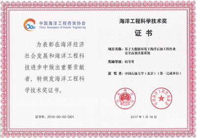 石大1項研究成果獲2016年度海洋工程科學技術獎特等獎