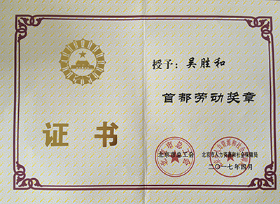 4月26日下午,北京市總工會召開2017年“五一”新聞發布會,宣布了2017年“首都勞動獎章”評選結果,299名首都勞動獎章稱號獲得者獲表彰。石大吳勝和教授被授予“首都勞動獎章”。