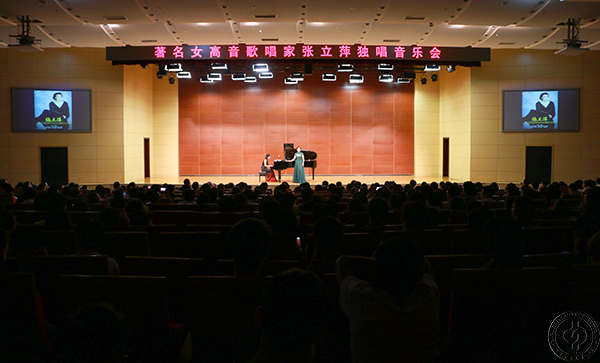 音樂會在著名歌曲《送別》中拉開了帷幕。在上半場的演唱中,張立萍演唱了《我在長江頭》《絨花》《鴻雁》《我愛這土地》等具有中國特色的歌唱作品。她富有感染力、表現力的嗓音和肢體語言讓在場師生感受到了高音歌唱家的風采。在下半場的演唱中,張立萍演唱了西方經典歌曲和著名的歌劇選段,如《假如我的歌聲有翅膀》《致克羅伊斯》《暮春》《圣潔女神》《為藝術為愛情》等,讓在場師生領略了西方音樂的魅力。所有曲目演唱結束后,在經久不息的掌聲中,張立萍返場演唱了《Time to say goodbye》。