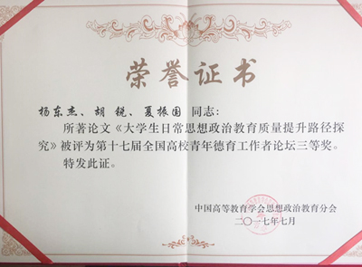 7月9日至10日,第十七屆全國高校青年德育工作者論壇在東北師范大學舉辦,來自全國21個省(市、自治區)、73所高校的136名高校青年德育工作者和專家學者參加了論壇。中國石油大學(北京)楊東杰、胡銳、夏振國所著論文《大學生日常思想政治教育質量提升路徑探究》獲第十七屆全國高校青年德育工作者論壇三等獎,楊東杰受邀參加論壇并在分論壇環節進行了發言交流。