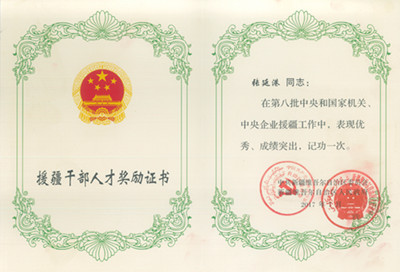 張延港同志的努力工作得到各方面認可,三年年度考核均為優秀,2017年7月被新疆維吾爾自治區黨委政府評為“第八批中央和國家機關、中央企業優秀援疆干部人才”榮譽稱號,并記功一次。