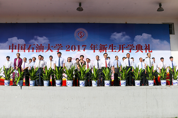 9月17日上午,中國石油大學在紅旗操場舉行2017年新生開學典禮,歡迎校本部4000多名新同學的到來。校領導山紅紅、張來斌、韓克飛、吳小林、徐春明、龐雄奇,副校級干部鮑志東以及各學院和相關職能部門負責人出席了典禮。典禮由副校長吳小林主持。