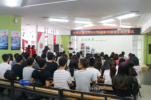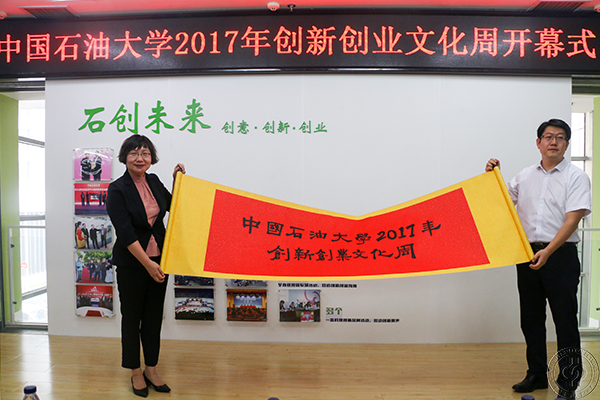 9月25日,中國石油大學2017年創新創業文化周開幕式在學生活動中心二樓石創空間舉行。黨委副書記、副校長韓尚峰,中國教育創新校企聯盟秘書長王新霞出席開幕式,并共同拉開卷軸,啟動2017年創新創業文化周。企業和校友代表、石大創新創業教育和教學工作領導小組成員單位負責人、學生工作干部、教師和學生代表齊聚一堂,共同見證2017年創新創業文化周開幕。