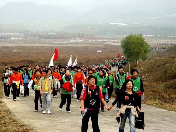 北京國(guó)際長(zhǎng)走大會(huì)已經(jīng)有20多年歷史,此次2007秋季北京國(guó)際長(zhǎng)走大會(huì)的主題是"貫徹十七大,微笑健康行",這也是長(zhǎng)走大會(huì)首次來(lái)到北京郊區(qū)。2007秋季北京國(guó)際長(zhǎng)走大會(huì)的路線全程17公里,選擇了2008年奧運(yùn)會(huì)鐵人三項(xiàng)比賽的賽道,這也是世界上最親近自然的鐵人三項(xiàng)賽道。參加長(zhǎng)走活動(dòng)的市民還可以欣賞到滿山紅葉,在鍛煉身體的同時(shí)切身感受到人與自然的和諧共處。