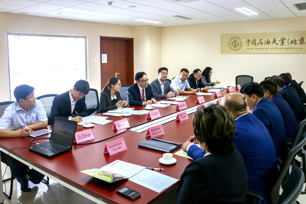 張來斌對代表團一行的到來表示歡迎,強調石大十分重視上海合作組織大學框架內的合作,與三所大學開展合作契合了中國提出的“一帶一路”發展倡議。他簡要介紹了石大辦學成就、辦學特色,提出了進一步加深合作的建議。來訪的三所大學代表分別介紹了各自學校情況,并表達了與石大合作的愿望。