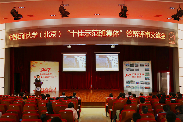 11月9日下午,石大2017年本科生“十佳示范班集體”答辯評審交流會在校園藝術中心舉行。從全校199個班級中脫穎而出的21個優秀班集體代表參加答辯,全校學生工作干部和班級學生代表共200余人參加活動。來自北京林業大學、北京科技大學、北京化工大學、北京交通大學、中國政法大學、華北電力大學等6所兄弟院校的學生工作干部擔任評委。