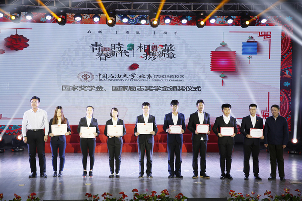 12月29日晚,中國石油大學克拉瑪依校區舉行“青春唱響新時代 攜手共譜新華章”2018年迎新晚會暨第一屆獎學金頒獎典禮。克拉瑪依市副市長熊躍偉,石大副校長、校區黨工委書記、管委會主任張士誠,校區黨工委常務副書記陳桂剛,管委會常務副主任孫旭東、副主任肖磊,總會計師張紅艷,皓泰工程建設集團有限公司副總裁王劍、紅有軟件股份有限公司董事長談繼強、新疆聯合能源股份有限公司董事田文廣、新疆貝肯能源工程股份有限公司人力資源總監兼部長郭麗、克拉瑪依市慈善總會會長魏安權以及其他在校設立獎(助)學金的企業和社會單位代表等參加了典禮。