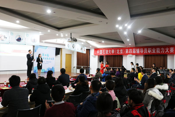 本次比賽共有78名專兼職輔導員參加。初賽包括基礎知識測試及主題班會視頻評選,根據筆試成績,10名輔導員晉級決賽。決賽包括主題演講、案例分析和談心談話情景再現三個環節,全面考察輔導員的邏輯思維能力、語言表達能力、應急管理能力以及深度輔導能力。在主題演講環節,輔導員以“十九大精神”為主題進行宣講,結合黨的歷史、石油夢、文化自信、生態文明建設等內容深入闡釋了對十九大精神的認識和理解。在案例分析環節,輔導員針對學業困難、心理健康問題、就業創業、校園貸款、網絡思想政治教育等大學生思想政治教育的熱點、難點問題,在3分鐘的時間內條理清晰地提出問題所在、解決問題的思路、實施辦法及相關啟示。談心談話情景模擬環節中,特別邀請北京化工大學5名輔導員“助演”,面對輔導員扮演的“學生”存在的重重問題,參賽輔導員沉著應對,深刻剖析問題的本質,從“引導、服務”和“法、理、情”等角度指出解決問題的思路,提出具體的解決方案,并圍繞問題闡述自我啟示。