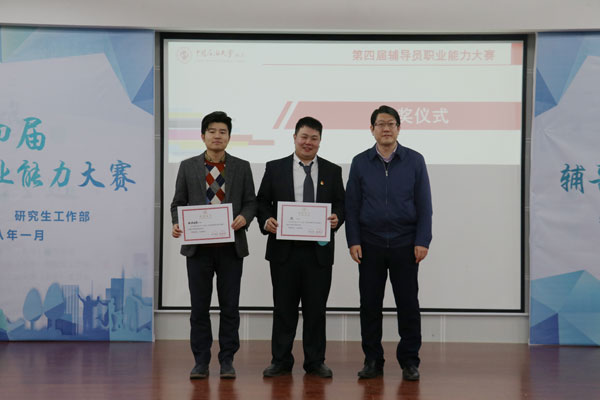 為提升學校輔導員職業能力和專業素養,切實推進輔導員隊伍專業化、職業化建設。1月9日,中國石油大學第四屆輔導員職業能力大賽決賽在學生活動中心報告廳舉辦。石大黨委副書記、副校長韓尚峰,相關職能部門負責人與全體學工干部及學生代表等150余人觀看了比賽。來自中國政法大學、中國農業大學、華北電力大學的專家擔任比賽評委。經過現場三個環節的角逐,化學工程學院輔導員韓瑾摘得桂冠。大賽還評選出二等獎3名、三等獎6名、單項獎4名、優秀組織獎2個。
