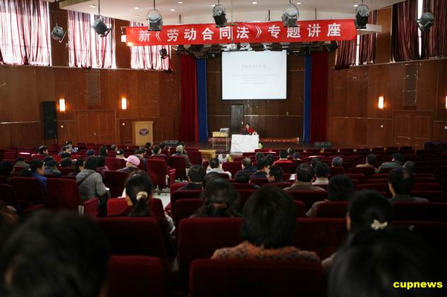 為了便于廣大教職工了解2008年1月1日即將生效的《勞動合同法》,11月23日下午,我校邀請中國政法大學金英杰副教授在科技會堂舉行了《勞動合同法》專題講座,本次講座由校黨委宣傳部和人事處共同舉辦。