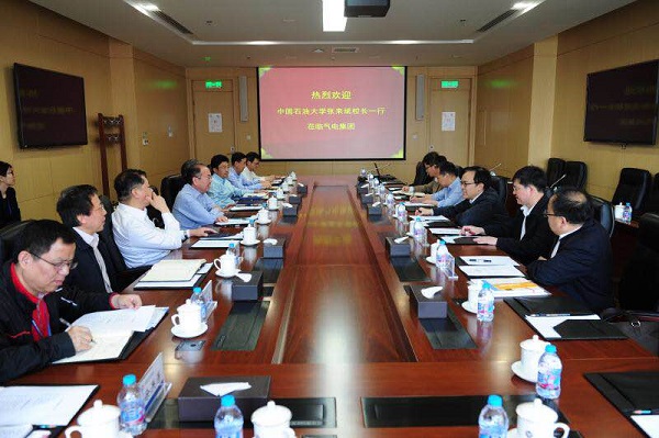 王中安對(duì)張來斌一行訪問氣電集團(tuán)表示熱烈歡迎,感謝中國(guó)石油大學(xué)為中國(guó)海油培養(yǎng)優(yōu)秀人才。氣電集團(tuán)科技部總經(jīng)理李旭從發(fā)展歷程、人員情況、科研情況等方面介紹了氣電集團(tuán)的基本情況。張來斌從“雙一流”學(xué)科建設(shè)、師資隊(duì)伍建設(shè)、科學(xué)研究、人才培養(yǎng)等方面介紹了中國(guó)石油大學(xué)的基本情況,感謝中國(guó)海油多年來對(duì)學(xué)校的大力支持。