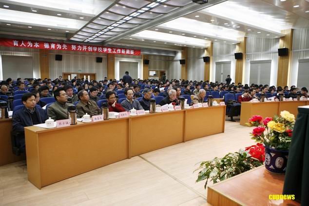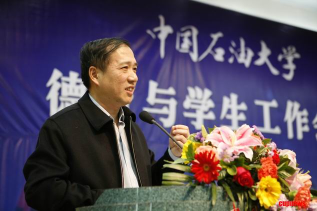 會上,教育部思想政治司司長楊振斌發表了講話,他充分肯定了我校的德育與學生工作,并希望進一步加強和改進大學生思想政治教育,培養更多更好的優秀人才,為國民經濟和石油工作做出更大貢獻。