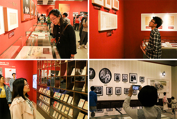 看到通過圖片展現(xiàn)的馬克思主義中國化的歷史進(jìn)程,理學(xué)院教師周廣剛說:“從一百多年前苦苦探尋救亡圖存之路,到如今日益繁榮富強(qiáng),在中國爭(zhēng)取民族獨(dú)立、實(shí)現(xiàn)人民幸福的進(jìn)程中,在中國特色社會(huì)主義的發(fā)展歷程中,馬克思主義永遠(yuǎn)閃爍著真理的光芒,彰顯出其強(qiáng)大的實(shí)踐指導(dǎo)力、深邃的理論穿透力、巨大的精神感召力。”工商管理學(xué)院輔導(dǎo)員楊昳晗說:“馬克思的壯麗一生給我們留下寶貴的思想資源,我們要學(xué)習(xí)馬克思身處困境、顛沛流離時(shí)不忘初心、頑強(qiáng)奮進(jìn)的精神,學(xué)習(xí)習(xí)近平新時(shí)代中國特色社會(huì)主義思想,樹立遠(yuǎn)大理想,積極拼搏進(jìn)取,為實(shí)現(xiàn)中華民族偉大復(fù)興的中國夢(mèng)貢獻(xiàn)力量!”看著一份份馬克思原始手稿,化學(xué)工程學(xué)院學(xué)生揣云涵說:“隔著150多年的時(shí)光,這些手稿向我們傳遞出的正是馬克思艱苦探索、追尋人類真理的精神。重溫馬克思主義一路走來的歷程,我們?cè)?/span>感受其真理光輝的同時(shí),也獲得了更多砥礪前行的動(dòng)力。”在當(dāng)代馬克思主義美術(shù)作品前,地球物理與信息工程學(xué)院學(xué)生熱阿宛·吾肯說:“看到藝術(shù)作品展現(xiàn)的革命先驅(qū)的光榮事跡,我們深刻認(rèn)識(shí)到生長(zhǎng)在中國共產(chǎn)黨領(lǐng)導(dǎo)下的安定和平的中國是多么地幸運(yùn),我們應(yīng)該珍惜這個(gè)偉大的時(shí)代,為早日實(shí)現(xiàn)中國夢(mèng)而不懈奮斗。”