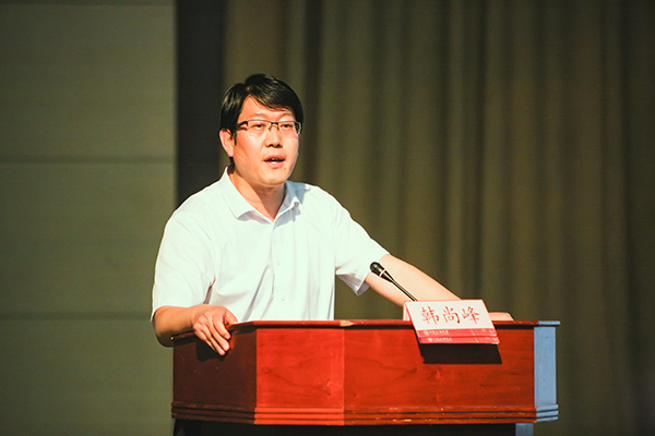 韓尚峰從理論維度、歷史維度、現(xiàn)實(shí)維度和青年成長(zhǎng)維度深入解讀了習(xí)近平總書(shū)記重要講話精神的時(shí)代背景和重要意義,從中國(guó)青年運(yùn)動(dòng)的時(shí)代主題、青年的認(rèn)識(shí)論、青年的成才觀以及“青年工作”觀四個(gè)方面闡釋了習(xí)近平總書(shū)記新時(shí)代青年觀的理論體系和主要內(nèi)容,結(jié)合“求真”、“力行”的科學(xué)精神與豐富內(nèi)涵,回答了青年學(xué)生追求什么樣的“真”,在什么“行”上發(fā)力的問(wèn)題,并通過(guò)豐富的案例,為青年學(xué)生踐行“求真”“力行”指明了方向路徑。他號(hào)召青年學(xué)生把“求真學(xué)問(wèn)”和“做實(shí)干家”結(jié)合起來(lái),努力在實(shí)現(xiàn)中國(guó)夢(mèng)的歷史進(jìn)程中書(shū)寫(xiě)青春的時(shí)代篇章。
