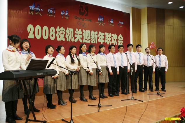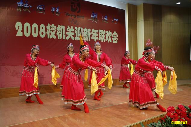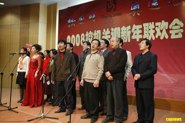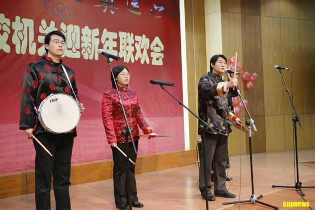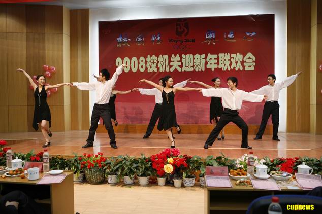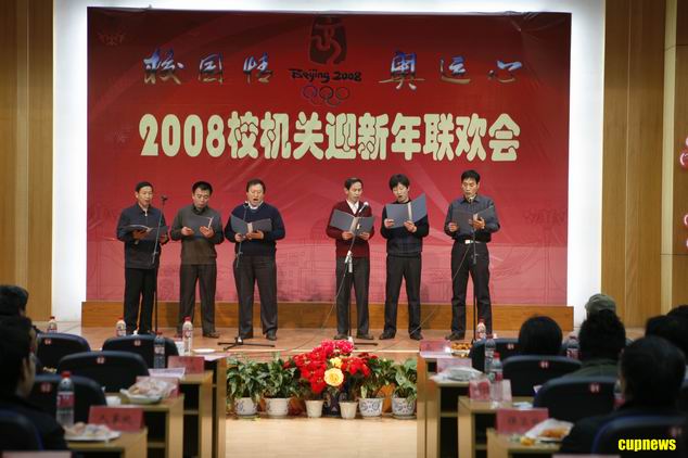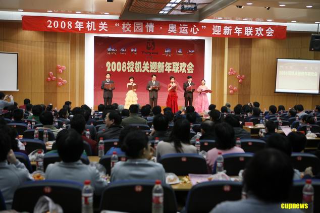 聯歡會前,張來斌校長致新年賀詞。張校長總結了2007年學校在各個方面取得的成績,對大家一年的辛勤勞動表示由衷的感謝。張校長說,我校機關、教輔單位是一支數量少、規模小、精練、高效的隊伍,是一支能打硬仗的隊伍。大家在過去一年通過扎扎實實的工作取得了優異的成績,但同時,張校長也要大家認識到學校發展中還有很多不足,大家要有憂患意識、危機意識,繼續加強學習,勤奮工作,為實現石油石化學科領域世界一流研究型大學的宏偉目標而努力奮斗。