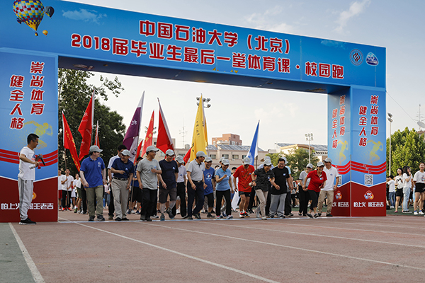 為營造參與體育、享受體育的校園文化氛圍,倡導畢業生文明離校,祝福畢業生帶著母校的期盼走向人生新的征程,6月14日,石大體育運動委員會、體育與人文藝術學院、學生工作處共同舉辦了中國石油大學2018屆畢業生最后一堂體育課——校園跑活動,黨委書記山紅紅,副校長董朝霞,相關職能部門、學院(研究院)負責人,以及2500多名2018屆畢業生參加活動。
