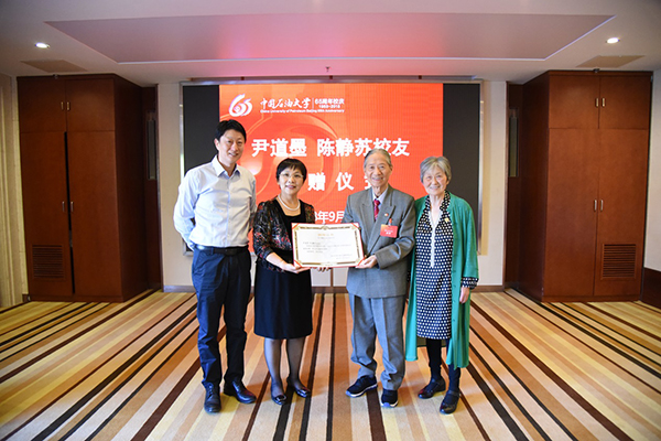 山紅紅對尹道墨、陳靜蘇夫婦心系母校表達感謝,表示世界各地石大校友對學校的關注和支持是學校發展的動力,老校友們身體力行助力學校發展,體現了對學校的摯愛情懷和責任擔當,學校將在校友的深切關注下不斷發展,向著石油石化學科領域世界一流研究型大學的辦學目標前進。