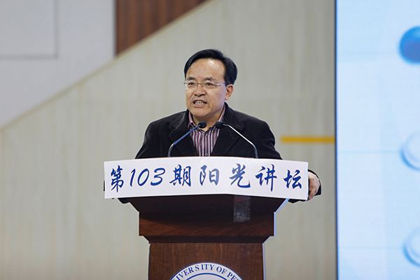 10月18日下午,中國石油大學第103期陽光講壇在多功能廳舉辦。石大大學生創新創業教育首席導師、新東方教育科技集團總裁俞敏洪為2000余名師生帶來了一場題為“人生的布局與展開”的主題報告。校長張來斌,黨委副書記韓克飛,黨委副書記、副校長韓尚峰出席活動。