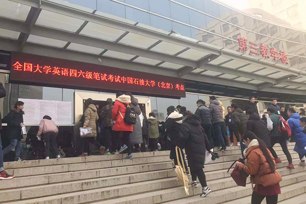 12月15日,2018年下半年全國大學英語四、六級考試中國石油大學(北京)考點考試順利結束。此次全國大學英語四、六級考試石大共有6426名學生報名參加,其中四級報考人數2826人,分為95個考場;六級報考人數3600人,分為120個考場。全校240多名教職工參與監考等考試保障服務工作。