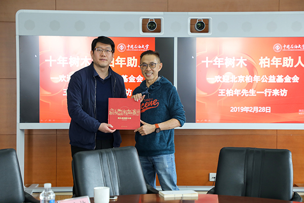 王柏年表示,柏年基金會將持續支持石大學生,在石大設立社會公益實踐項目,鼓勵大學生走出校門,了解中國貧困落后地區的教育發展情況,通過自助、助人,服務社會、傳遞關愛,鍛煉大學生自強成才。