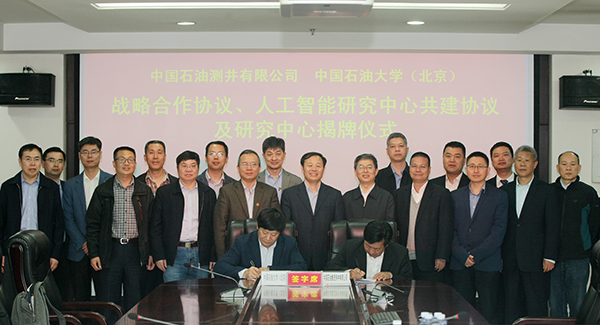 17日上午,中國石油集團測井有限公司總經理李劍浩、總工程師湯天知等企業領導接待了李根生一行,并舉行座談會。雙方就科研合作、人才培養、實驗室建設等問題進行了深入交流,人工智能學院院長肖立志教授作了專題報告,湯天知介紹了中油測井的科技進展和未來規劃,與會人員共同觀看了中國石油大學(北京)宣傳片。李根生和李劍浩分別代表校企雙方簽訂了“戰略合作框架協議書”“人工智能研究中心共建方案”,并為“人工智能研究中心”揭牌。協議的簽訂,標志著雙方的合作進入一個新的階段,雙方將進一步在科研攻關、科技創新、研發平臺建設等方面開展更深層次的合作與交流,結合各自特色和優勢,實現互惠互利、共同發展。