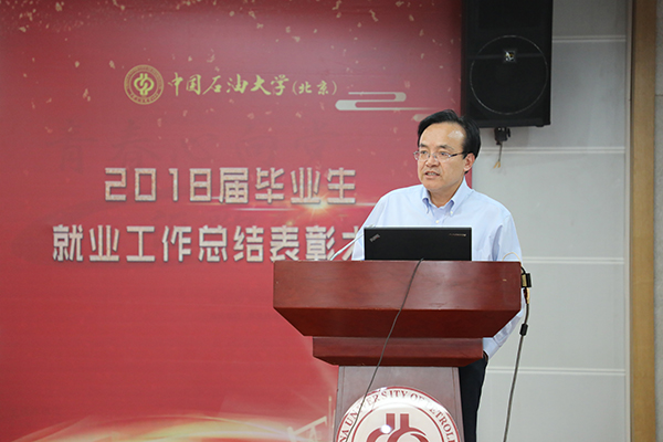 韓尚峰宣讀了《中國石油大學(北京)關于表彰2018屆畢業生就業工作先進集體、就業工作進步獎、就業工作先進個人的決定》。