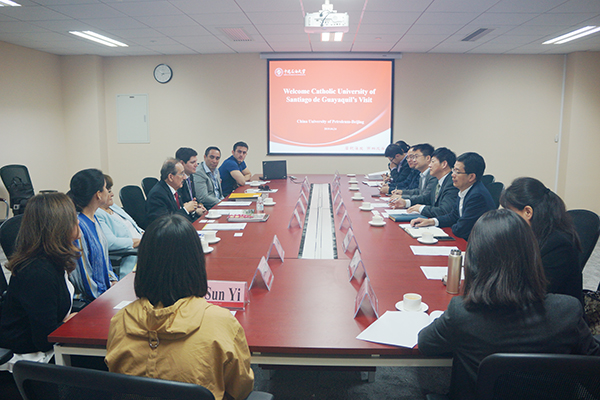 李根生對代表團的到來表示歡迎,介紹了石大的基本情況,尤其是國際合作交流以及厄瓜多爾孔子學院的相關情況,表示石大愿意與瓜亞基爾圣地亞哥天主教大學在教育教學、人才培養等方面,特別是圍繞漢語與西班牙語教學、工商管理領域學生交流和人才培養加強合作,希望雙方以此次訪問為契機,加強校際交流,探索合作新模式。