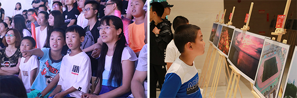 在主樓A座“風(fēng)華藝苑”展廳,中小學(xué)生及家長(zhǎng)參觀了“我的視角‘瞰’祖國(guó) 我與祖國(guó)共成長(zhǎng)”2019年全國(guó)大學(xué)生無(wú)人機(jī)航拍作品大賽優(yōu)秀作品展,觀看了無(wú)人機(jī)航拍的視角下祖國(guó)美麗壯闊的大好河山、高校青年學(xué)子家鄉(xiāng)獨(dú)特的自然景觀和人文景觀、高校校園豐富多彩的校園活動(dòng),感受了無(wú)人機(jī)航拍技術(shù)帶給人們的視覺震撼以及所呈現(xiàn)的科技之美、人文之美。