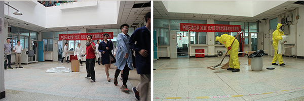 演練模擬了危險廢物在校內轉運過程中,發生意外泄漏事故的情況下,工作人員緊急啟動危險廢物泄漏事故應急預案,根據規范流程,各司其職、密切配合,經過緊急疏散、人員救治、現場警戒、實地勘察、檢測評估、集中收集處置泄漏物、轉移暫存等作業,泄漏的危險廢物得到了控制和清除,確保了實驗室人員、財產和環境安全,避免了人員傷亡和環境污染。