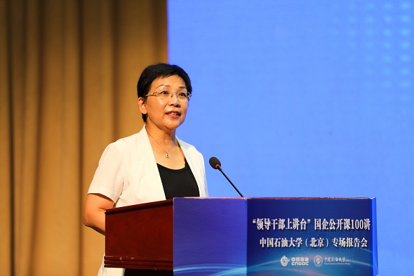 6月20日下午,“領導干部上講臺”——國企公開課100講中國石油大學(北京)專場報告會在中油大廈三層報告廳舉行。中國海洋石油集團有限公司黨組書記、董事長楊華走上講臺,以“出于藍·勝于藍——從中國海油看國有企業的改革發展”為題,為石大700余名師生上了一堂深刻生動的主題思政課,把中國海油最新的發展成果、最鮮活的實踐案例、最生動的時代故事帶進了石大校園。