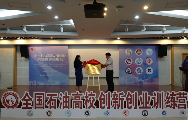 韓尚峰和張靜為全國石油高校創新創業訓練營揭牌。