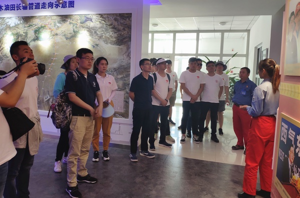實踐團成員們參觀了塔里木油田展覽館和輪南計量站,并到“西氣東輸”工程首站走訪學習。通過參觀、走訪,成員們了解了塔里木油田的歷史沿革,深切感悟到前輩們面對惡劣的自然環境和復雜的地質條件,征戰“死亡之海”、挑戰“生命禁區”,盆地油氣勘探“五上五下”,找到并開發一系列大中型油氣田的艱難歷程;深刻領悟了“艱苦奮斗、真抓實干、求實創新、五湖四海”的塔里木精神,深刻理解了“只有荒涼的沙漠,沒有荒涼的人生”的時代內涵。中國石油大學(華東)社會實踐博士團也參加了上述活動,兩校實踐團隊成員充分交流,增進了兄弟院校間的友誼。