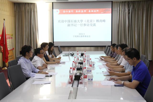8月6日,學校黨委副書記、副校長韓尚峰帶隊走訪寧夏石化公司、寧夏寶豐能源集團公司、寧夏燕寶慈善基金會。