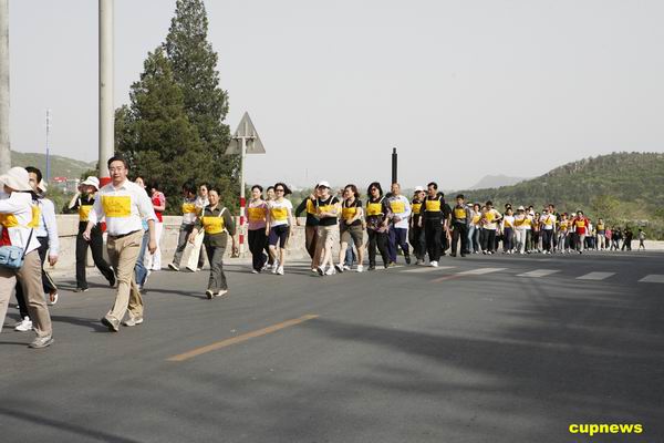 我校教職工“迎奧運倒計時100天”系列活動之一“迎奧運 健身行”長走活動于4月30日下午在風景秀麗的十三陵水庫舉行,由黨委書記蔣慶哲發令出發,400多名教職工參加了此次活動。