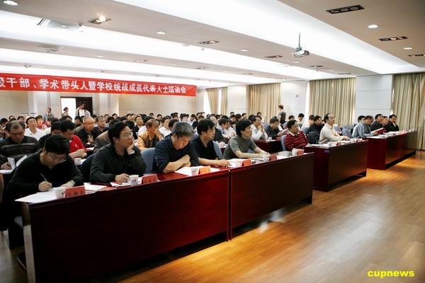 2008年5月15日至17日,由校黨委統一安排,組織部、宣傳部、統戰部、紀委辦公室共同舉辦的二級干部、學術帶頭人暨統戰成員代表人士培訓會在國際交流中心報告廳舉辦。此次培訓的主題是:認真學習十七大精神,深入貫徹落實科學發展觀,以能力建設為核心,促進學校工作不斷深入,推動學校事業科學發展。主要培訓內容分為四大板塊:黨的十七大精神的學習;高等教育形勢和安全穩定;預防職務犯罪和財經政策法規;干部管理能力與人才素質建設。全體校領導參加了此次培訓會,并親自作報告或主持會議。
